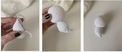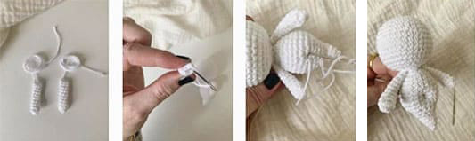 Close the opening, fasten off, pull the thread until it forms a stitch at the tip and sew at the back.