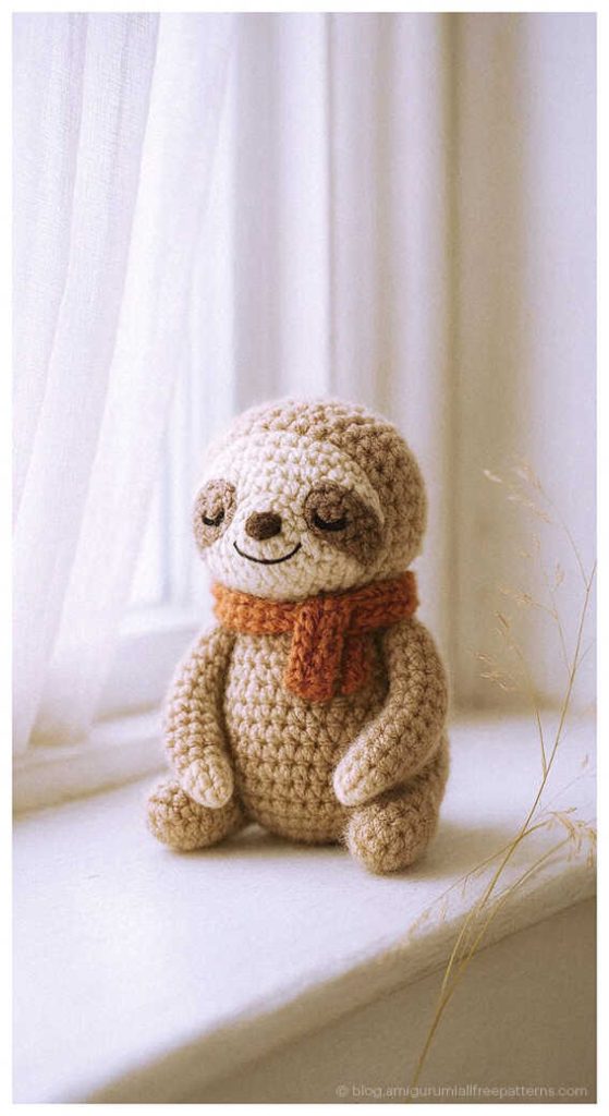 This free cute amigurumi sloth pattern is inspired by the calm and lovable nature of these gentle animals. With its soft shape and relaxed look, this sloth makes a charming choice for DIY Crochet Gift Ideas, nursery decor, or cozy handmade toys. You will also find inspiring amigurumi sloth ideas shared at the very end of the pattern. Simple designs like this naturally fit Easy Crochet Projects, and we sincerely thank the designer for sharing this beautiful creation. If you enjoy animal toys, the amigurumi bunny pattern may also inspire you.