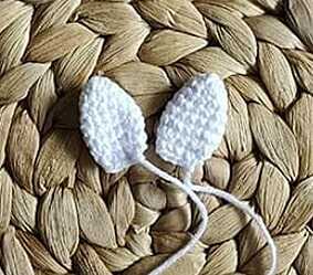 single crochets to the beginning of the chain, without interrupting the yarn, we collect the next chain in this order: 44, 43, 43, 43. Cut off, leave a long yarn for sewing.