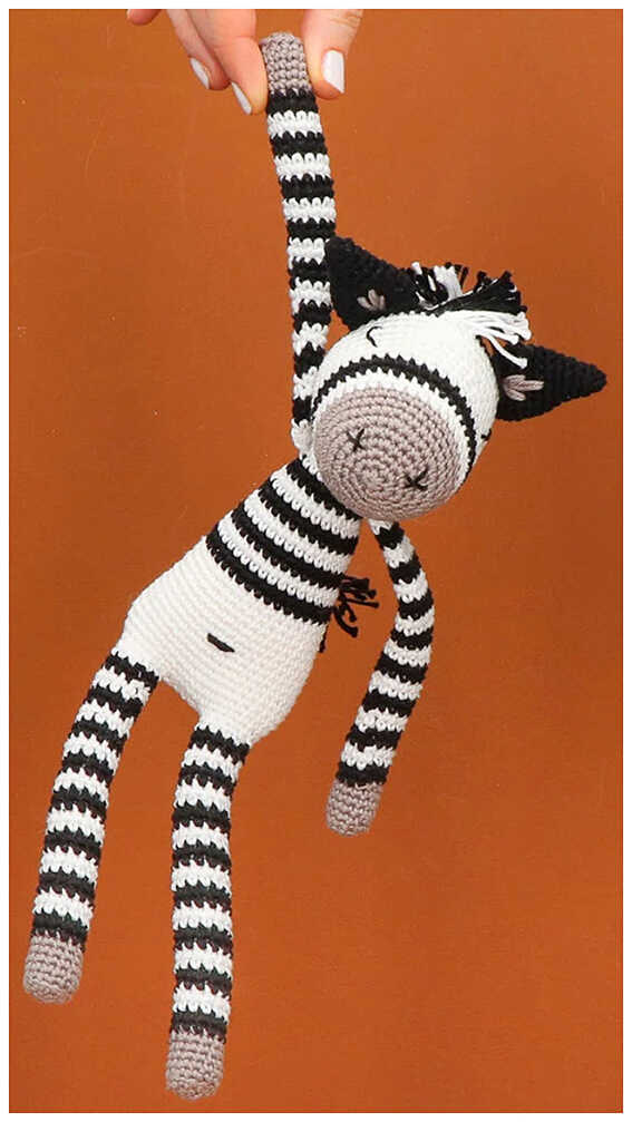 The zebra is crocheted using the cross stitch method. It turns out 21 cm.