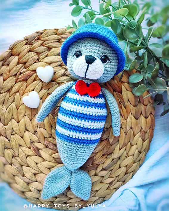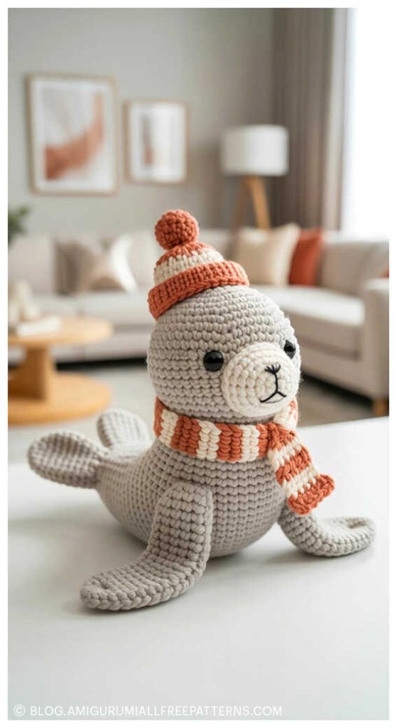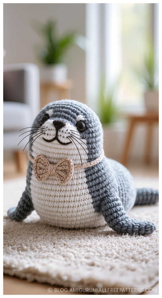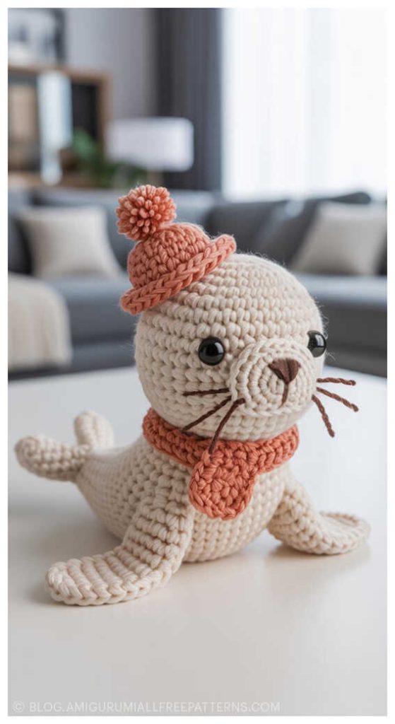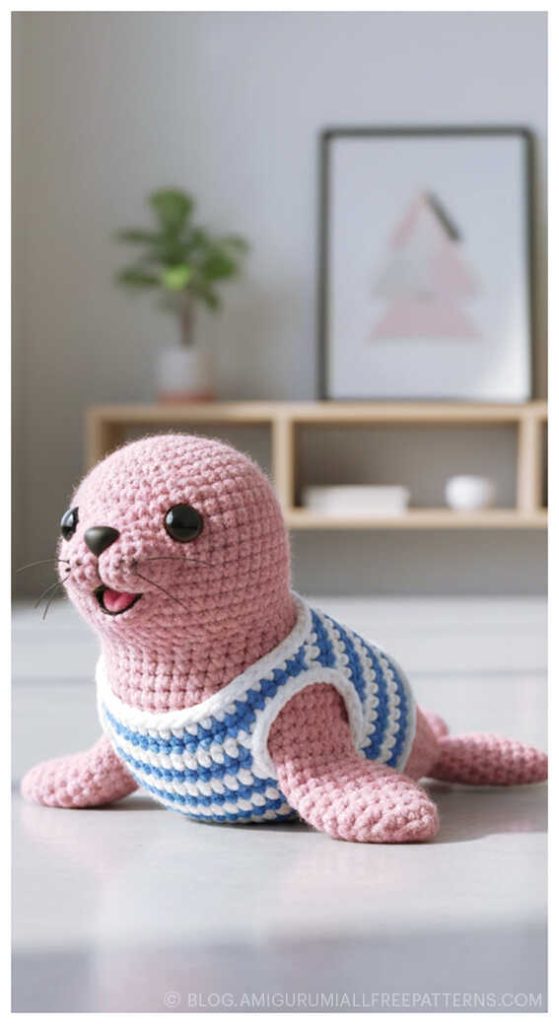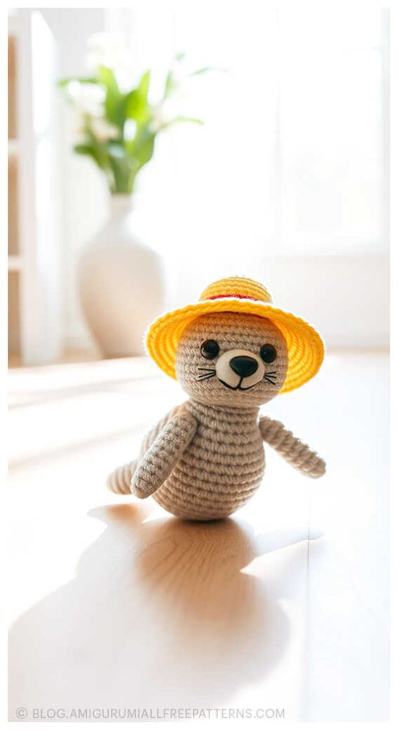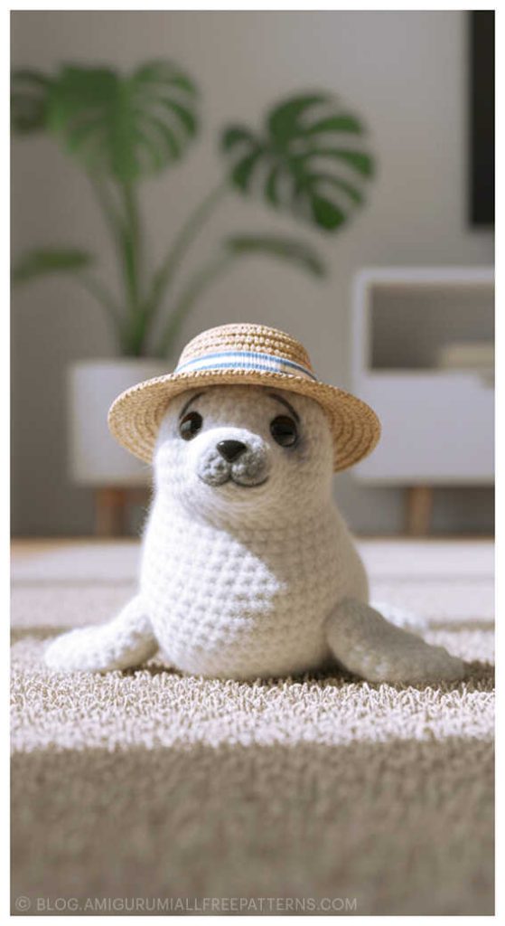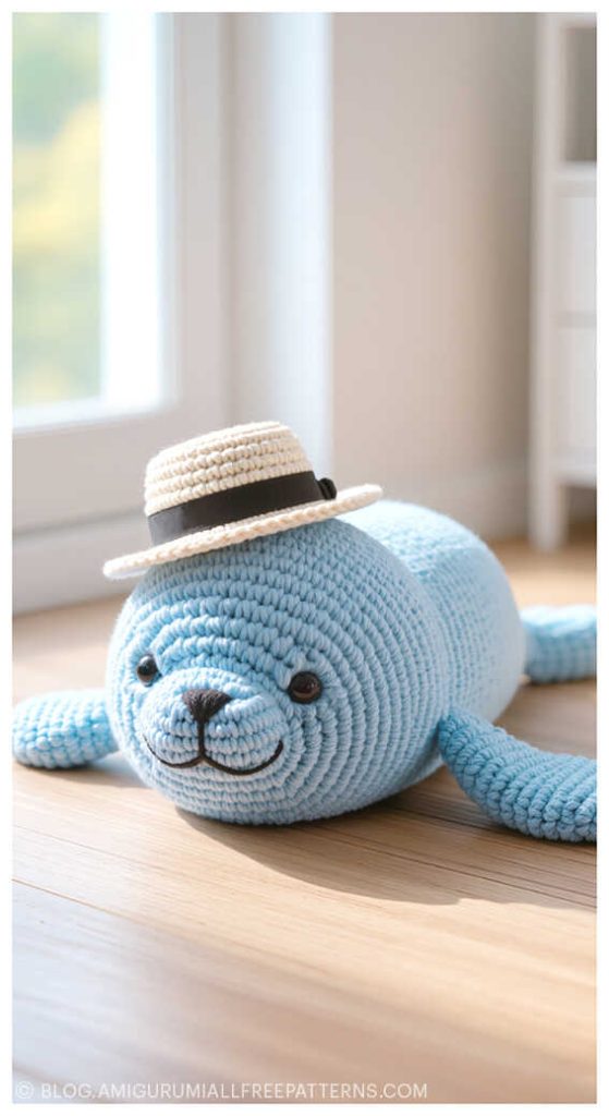 Bring a touch of oceanic charm to your crochet collection with this delightful Amigurumi Fur Seal Free Pattern, designed by Happy Toys by Yulya (VK). Perfectly sized at about 25 cm (9.8″) when finished, this adorable fur seal is crafted with Yarn Art Jeans yarn (a soft blend of 55% cotton and 45% acrylic) and comes in playful color combinations for both boys and girls. With accessories like a panama hat, bow tie, or skirt, plus the cute embroidered details using YarnArt Iris yarn, this project is not only charming but also step by step and beginner-friendly, making it ideal for both newcomers and experienced crocheters looking for a fun, rewarding project.