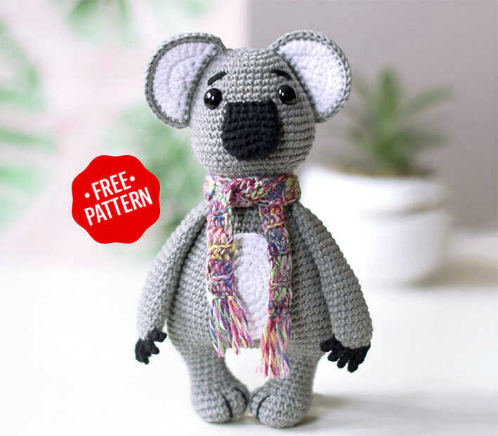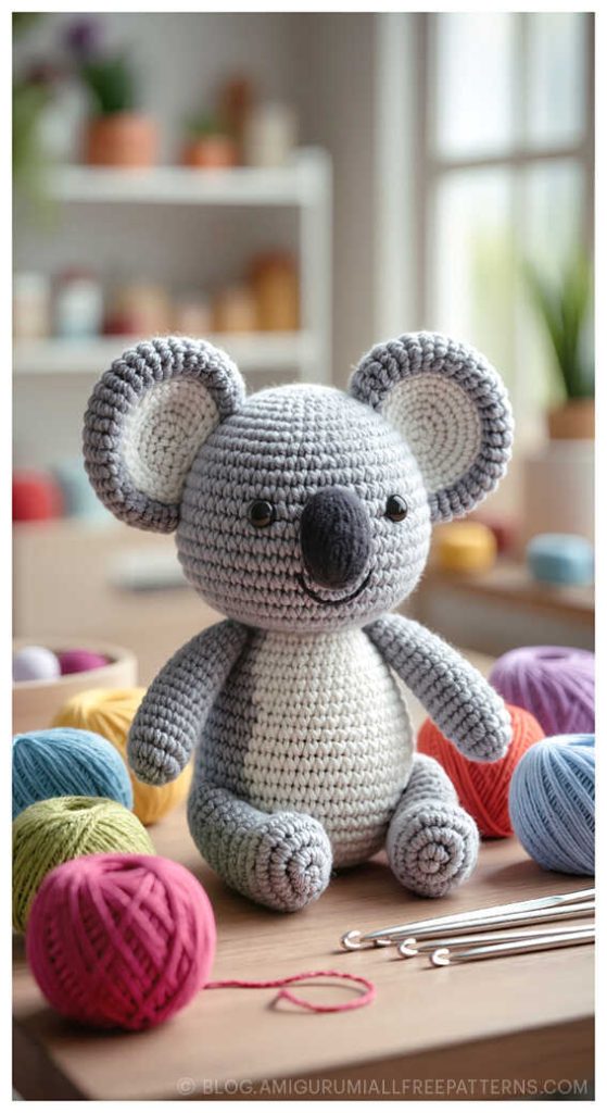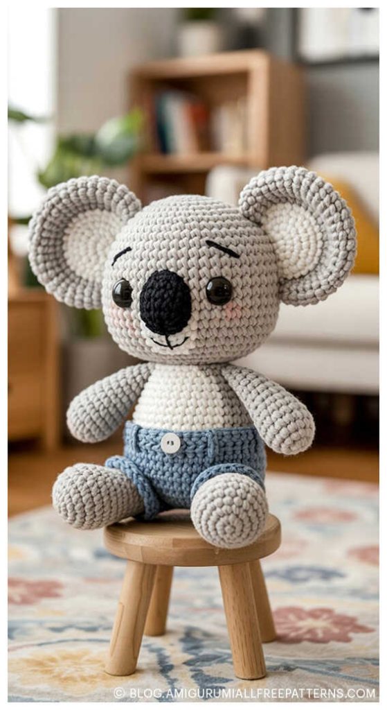 Wrap up your yarn and hooks for one of the sweetest woodland friends — the Free Crochet Koala with Scarf Amigurumi Pattern designed by the talented Teirin Evenstar (YouTube). This step-by-step, beginner-friendly crochet project is perfect for anyone who loves cute and cozy handmade toys. With its soft gray body, fluffy ears, and colorful little scarf, this amigurumi koala makes a delightful gift or decor piece. Using YarnArt Jeans yarn in gray, black, white, and your favorite scarf color, along with a 2 mm hook, 8–10 mm safety eyes, toy filler, and a large eye needle, you’ll have everything you need to bring this adorable koala to life.